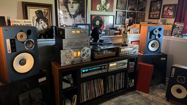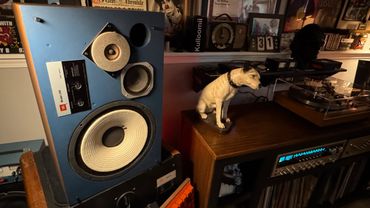 A set of JBL L100s I decided to paint in Authentic Vintage JBL Blue